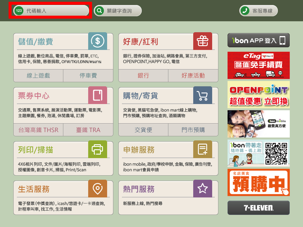透過ibon輸入退貨便服務代碼並列印出「交貨便服務單」